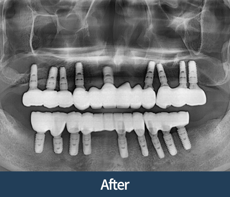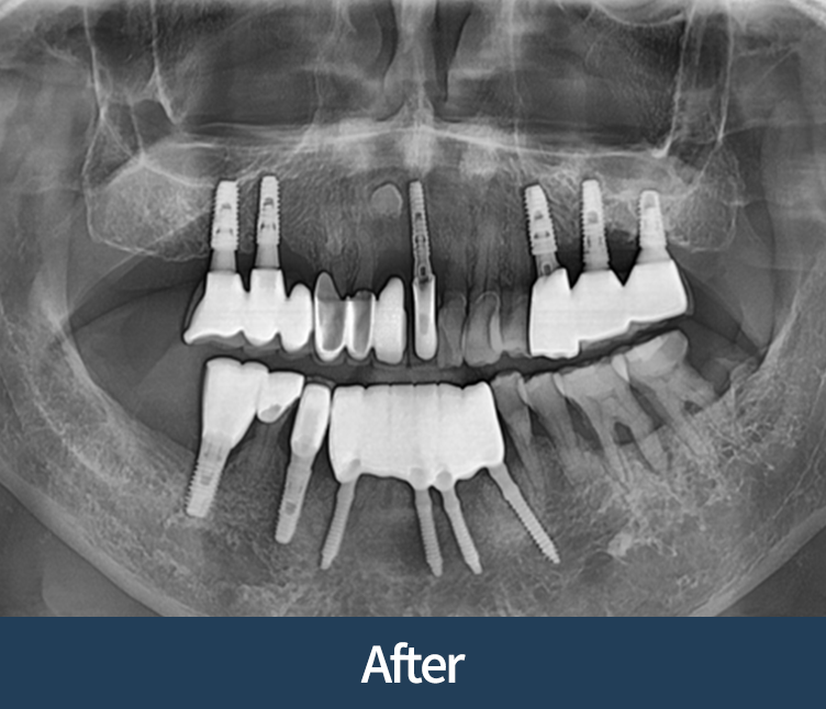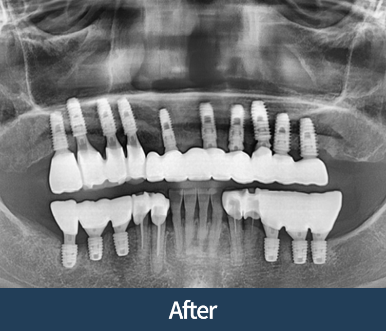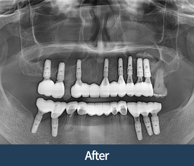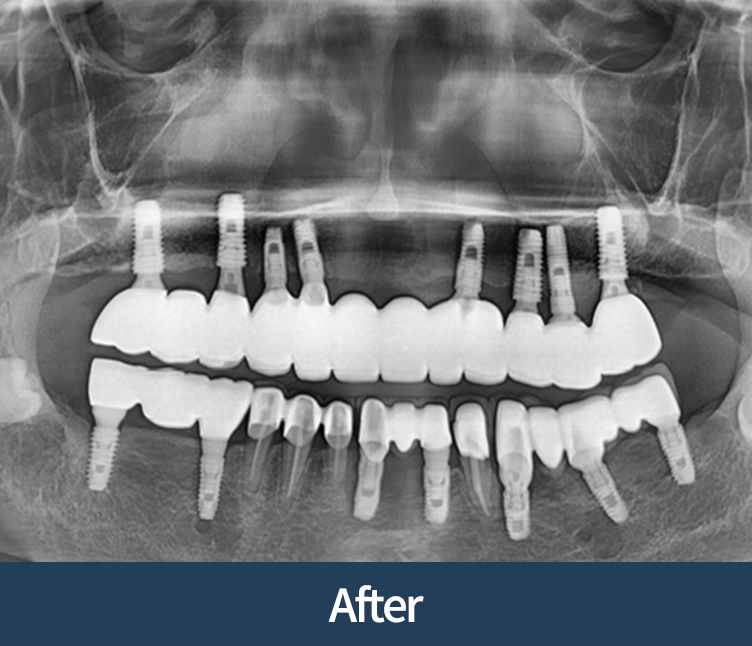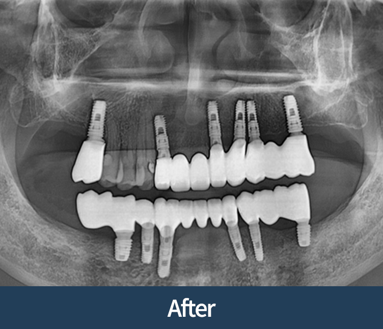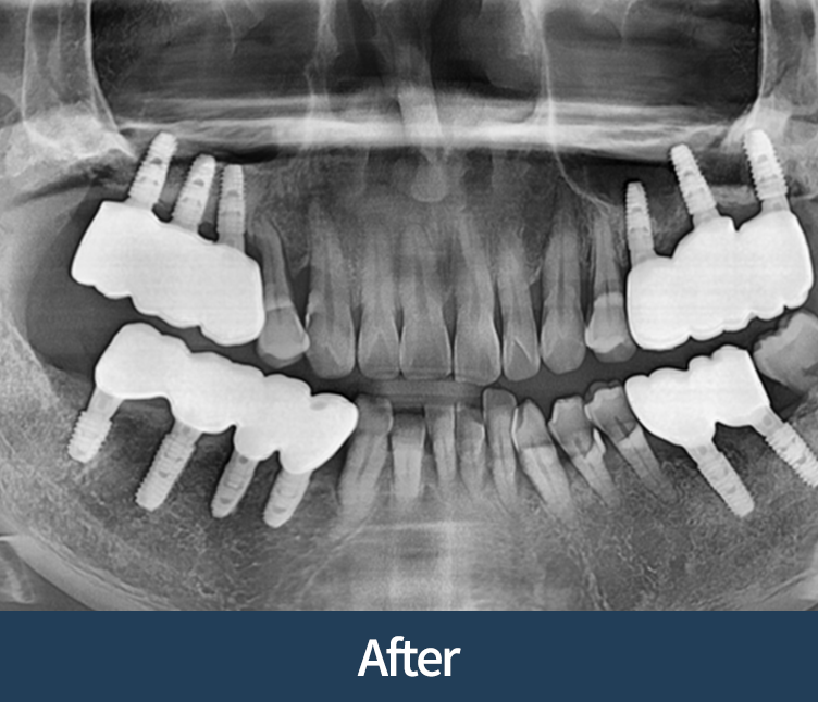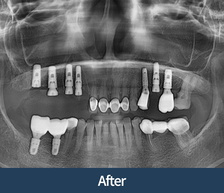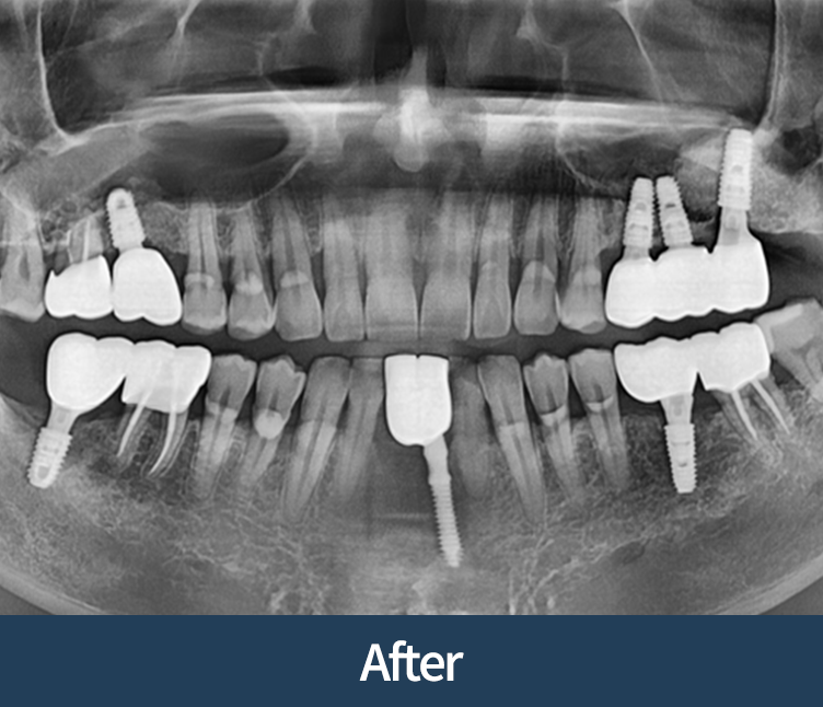 이식이 없어도 안전한 경우에 한해 임플란트로 진행합니다.